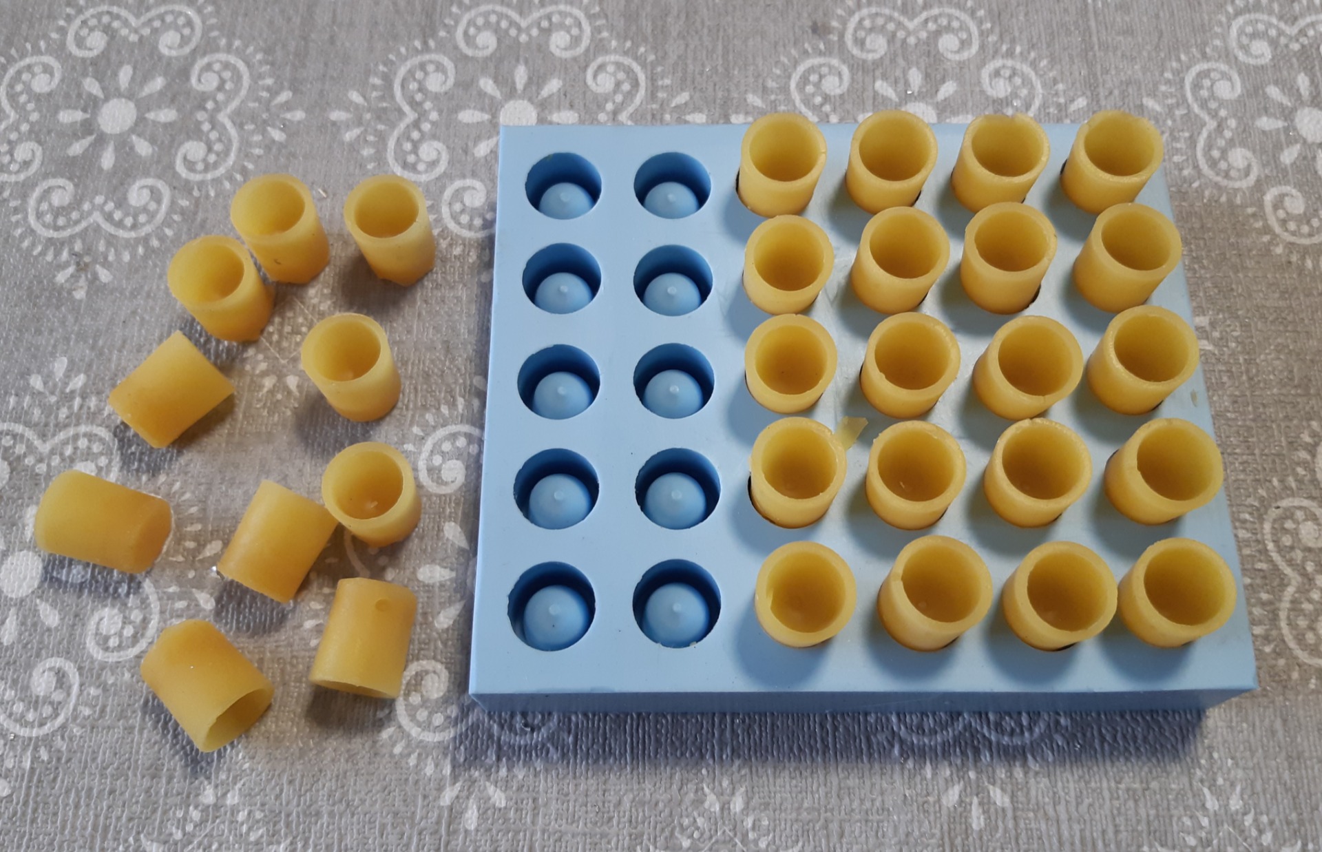 Pro chovatele matek mám k dispozici formu na odlití mateřích misek ze včelího vosku. Forma je na 30 ks. misek.