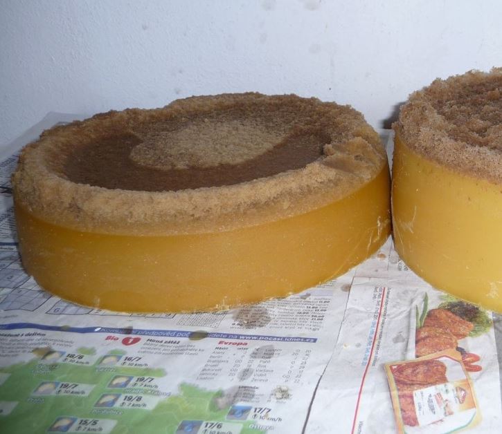 Po vychladnutí najdeme na spodní straně koláče porézní vrstvu vosku, s obsahem nejmenších nečistot a barviv, které je možné lehce odstranit oškrabáním.