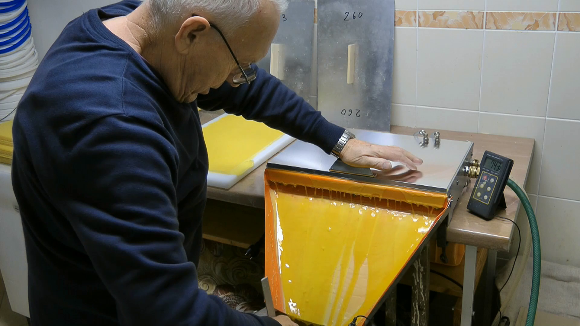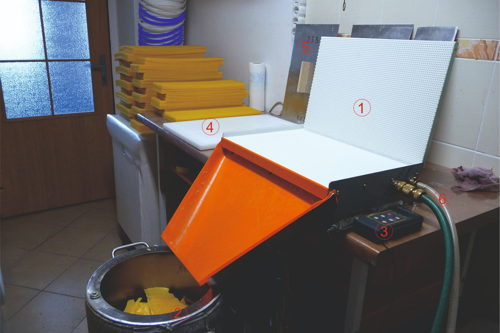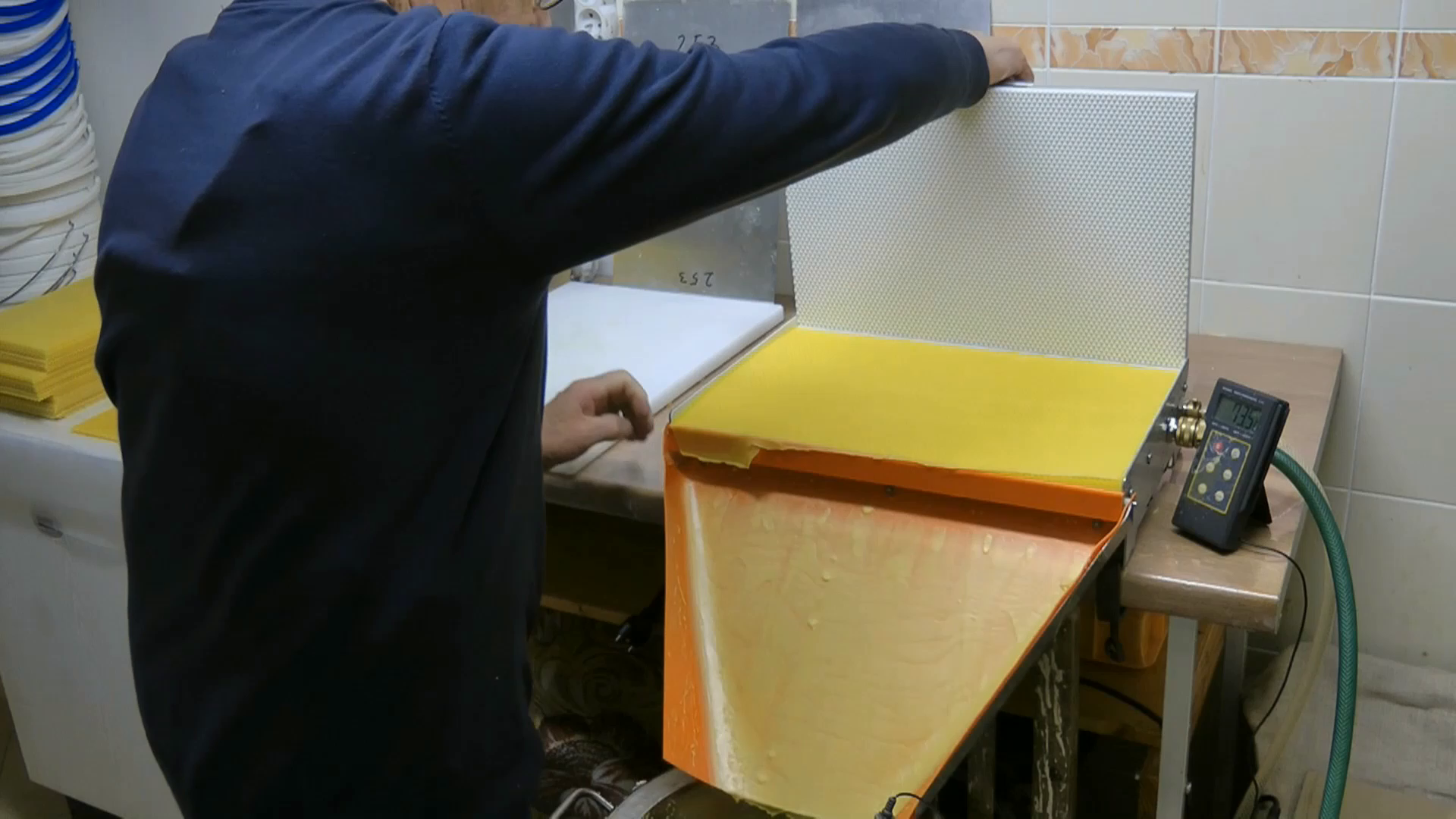 Víko lisu je potřeba zavírat plynule, tak aby přebytečný vosk měl čas vytéct a hlavně aby měl čas uniknout vzduch. Když nemůže vzduch uniknout, vytlačí vosk a většinou na vrchní straně mezistěny se vytvoří plochá místa bez reliéfu buněk. Víko pomalu položím na hladinu vosku a poté domáčknu.